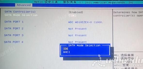 2.选择Advance,选择SATA Configuration,选择SATA Mode Selection,选择AHCI。要安装XP系统的选择IDE这项。如图所示: