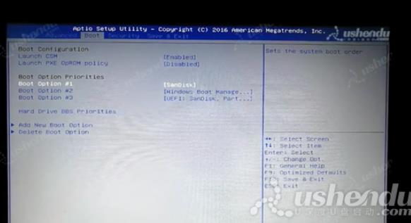 4.选择到Boot,选择Boot Option#1,将UEFI:U盘名字设置为第一启动项。如图所示: