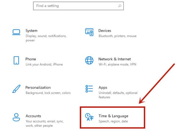 3、随后回到设置页面,点击“time&language”,再点击“language”。如图所示: