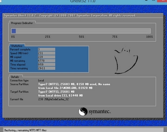 6、此时就可以拔除u盘了,重启系统开始进行安装,我们无需进行操作,等待安装完成即可。