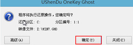2、在u深度pe装机工具中选择win7镜像放在c盘中,点击确定,如下图所示: