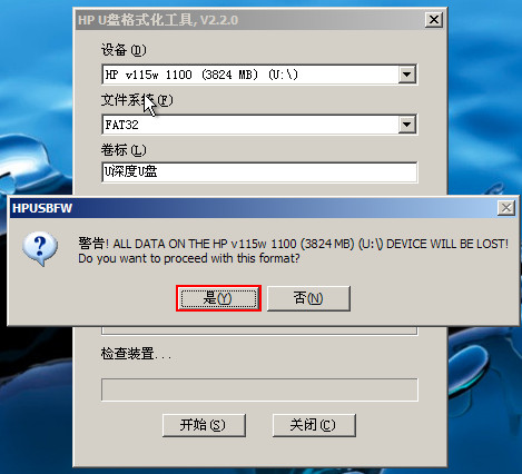5、点击开始后,系统会弹出一个警告窗口,提示我们要做好文件的备份,文件备份好了的情况下点击“是”按钮,如下图所示: