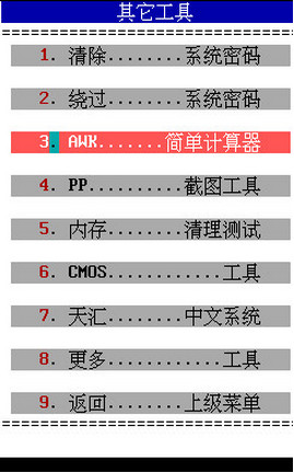 5、进入“其他工具”界面后,即可选择【3.AWK...简单计算器】工具,按回车键打开,如下图所示: