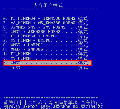 3、进入新界面后,选择【K.XMGR...模式】选项,按回车键确认选择,如下图所示: