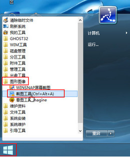 2、进入pe系统后,依次点开“windows图标-图形图像-截图工具(Ctrl+Alt+A)”,如下图所示: