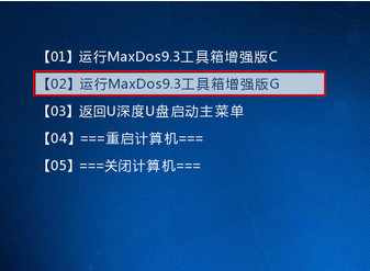 2、选择【02】运行MaxDos9.3工具箱增强版G,如下图所示: