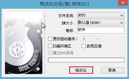 4、随后弹出提示框,一般不做更改,直接点击“格式化”即可,如下图所示: