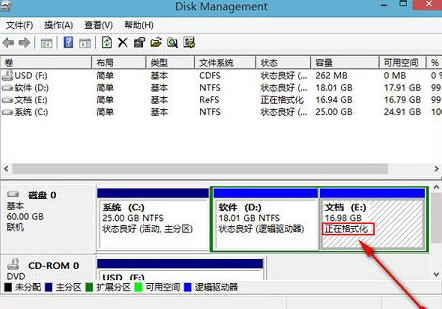 6、此时我们会看到硬盘分区正在进行格式化,我们等待其完成格式化,如下图所示: