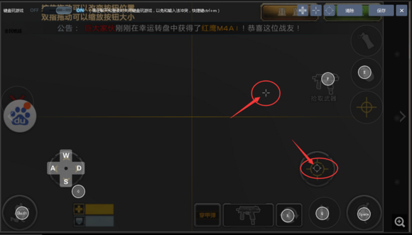 4、开火键位,在《全民枪战》开火按钮的中心;准星键位,在开火按钮的外面。记住一定要在外面,否则按下了右键以后,会一直开火。