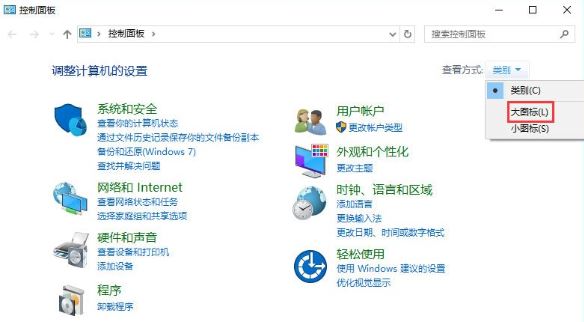1、打开开始菜单--打开控制面板,切换到大图标模式;